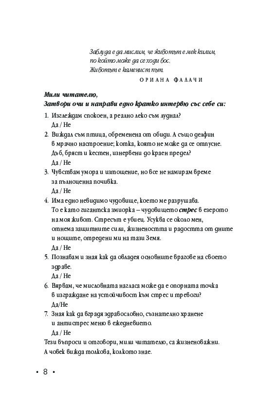 В книгата ще намерите въпросник, с който сами да определите дали страдате от надбъбречна умора и ако да, в каква степен.