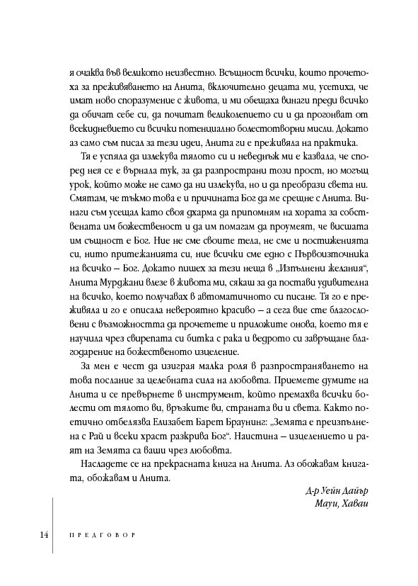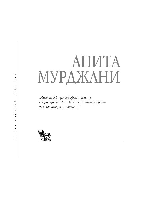 В тези истински вдъхновяващи мемоари Анита Мурджани разказва как, след като се е борила с рака почти пет години, тялото ѝ – изтощено от злокачествените клетки, разпространили се из целия ѝ организъм – започнало да умира. Когато органите ѝ престанали да функционират, тя навлязла в близко до смъртта преживяване, в което осъзнала вродената си ценност ... и действителната причина за нейната болест. След като Анита дошла в съзнание, състоянието ѝ започнало да се подобрява толкова бързо, че я изписали от болницата след броени седмици,... без следа от рак в тялото ѝ!