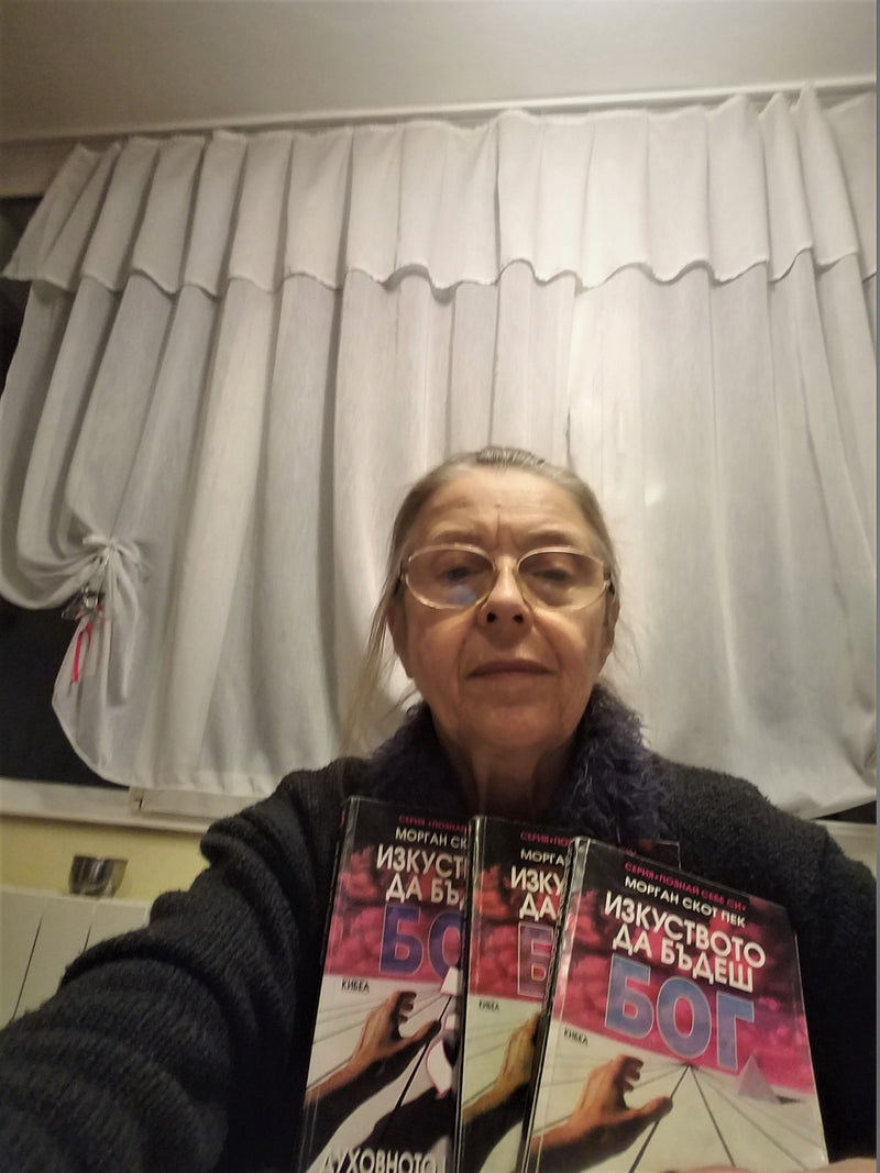 Ваучер за книги на стойност 50 лв. – Виолета Иванова: В памет на съпруга ми проф. Кънчо Иванов, който беше страстен читател, почитател и пропагандатор на Морган Скот Пек реших да ви пиша. Благодарение на него повечето ни приятели прочетоха книгите от серията "Изкуството да бъдеш БОГ". И понеже са мислещи хора, не винаги бяха съгласни с автора. Прекарвали сме часове в спорове и обсъждане.