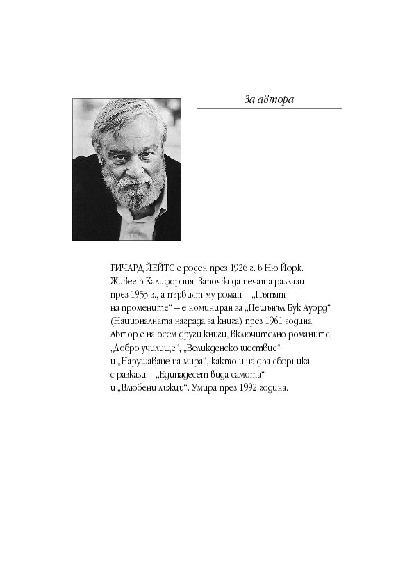 Култовият роман на Ричард Йейтс има какво да каже на съвременността, тъй като открито изрича често потулвани истини за човешката същност. През 2008 г. носителят на Оскар Сам Мендес, въодушевен от „Пътят на промените“, създава поразяващия с драматизма си едноименен филм, в който Кейт Уинслет и Леонардо ди Каприо изпълняват главните роли.