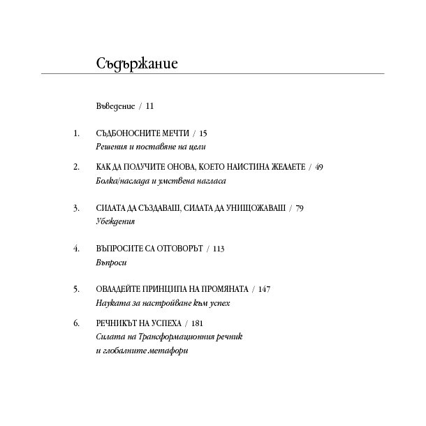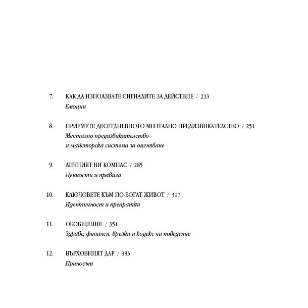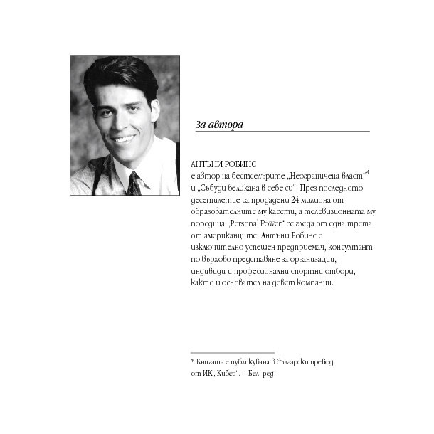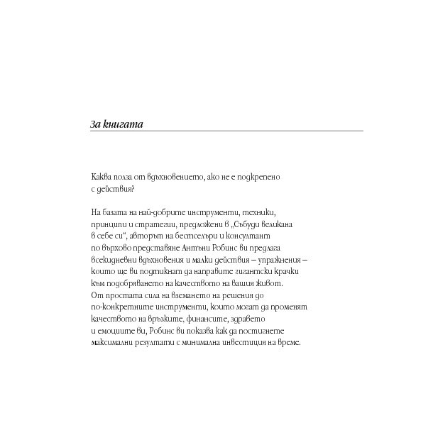 На базата на най-добрите инструменти, техники, принципи и стратегии, предложени в „Събуди великана в себе си“, авторът на бестселъри и консултант по върхово представяне Антъни Робинс ви предлага всекидневни вдъхновения и малки действия – упражнения – които ще ви подтикнат да направите гигантски крачки към подобряването на качеството на вашия живот.