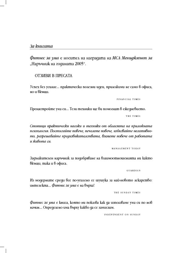 Фитнес за ума е носител на наградата на MCA Mениджмънт за „Наръчник на годината 2005“.
