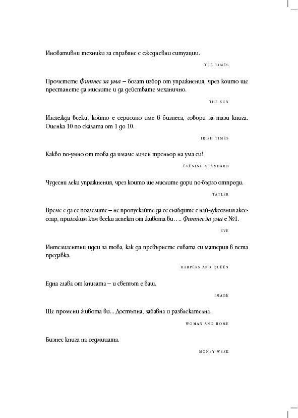 „Ако говорим за усъвършенстване на умовете ни, Фитнес за ума е марка №1 – може напълно да й се доверите и дори да се влюбите в нея.“