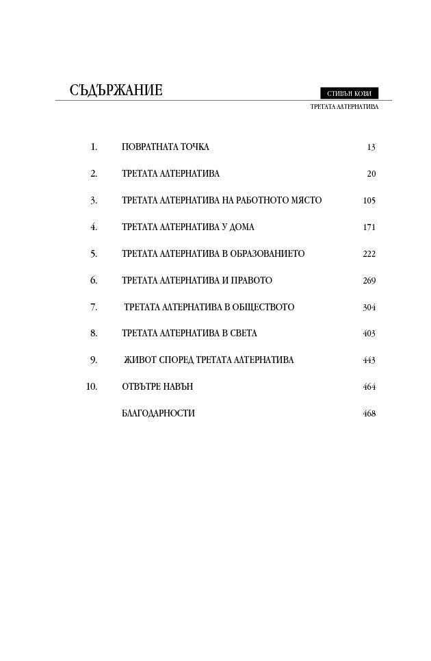 „Д-р Кови отново го направи. „Третата алтернатива“ е не само силно четиво, но и отговаря на най-трудните въпроси в живота. Задължителна книга за всички бъдещи лидери.“