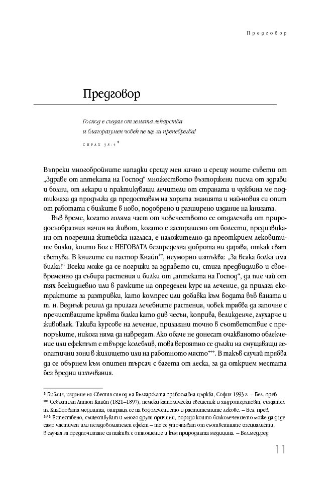 Тъй като днес, за жалост, се отдалечаваме все повече от природосъобразния начин на живот и все повече болести са предизвикани от погрешна житейска нагласа, преоткриването на „аптеката на Господ“ отговаря на една всеобща потребност. С това ново издание по-възрастните ще си припомнят съветите на Мария Требен, а по-младите ще ги открият за себе си и за своите деца. Винаги е добре да имаш мъдър събеседник, който не само дава знание, но вдъхва и най-ценното – надежда.