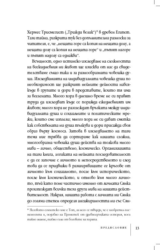 Говори се, че тайната на вселената някога е била съобщена на Хермес Трисмегист („Трижди велик“) в древен Египет. Тази тайна, разкрита тук без допълнителни разноски за читателя, е, че „нещата горе са копия на нещата долу, а нещата долу са копия на нещата горе“ и „пътят нагоре и пътят надолу са еднакви“.