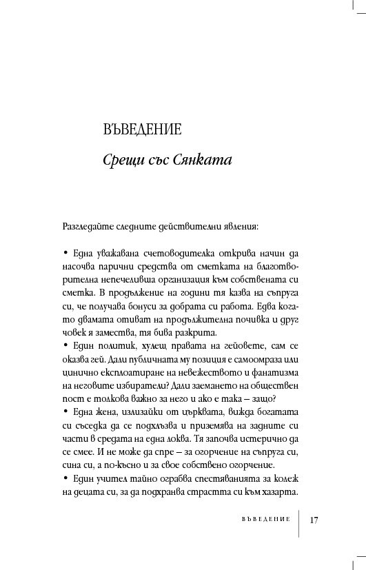 Съдържанието развива централната теза, относително неизвестна на широката публика, но тривиална от гледна точка на дълбинната психология, че човешката душа не е едно-единствено, единно или обединено нещо, както егото би искало да вярва. Тя е различна, многообразна и раздвоена, ... винаги раздвоена. Онези хора, които не разглеждат последствията на разделената човешка душа, ще си останат несъзнаващи и затова са опасни за себе си и другите. „Да разбираме сянката си. Защо добрите хора вършат лоши неща“ ни приканва да водим по-обезпокоителен диалог със себе си и с нашия свят, диалог, обещаващ по-голяма, а не по-малка сложност, но за да прорасте разбирането за себе си и за света.