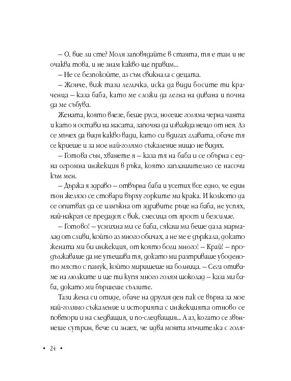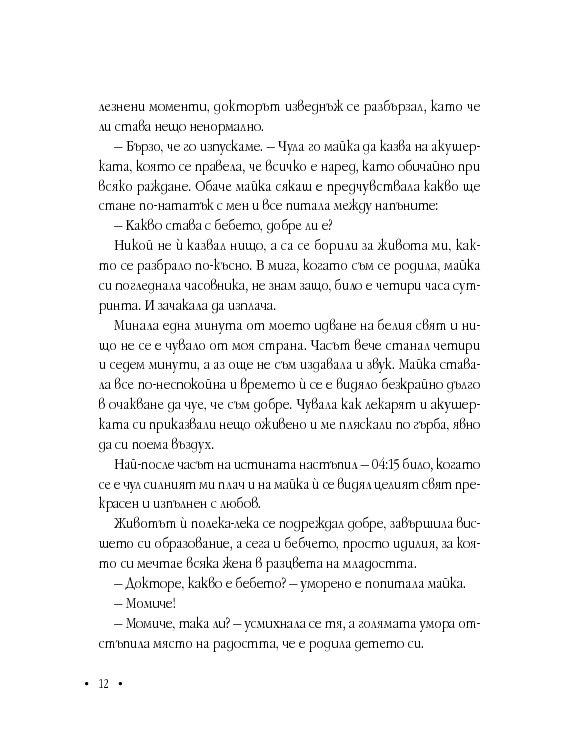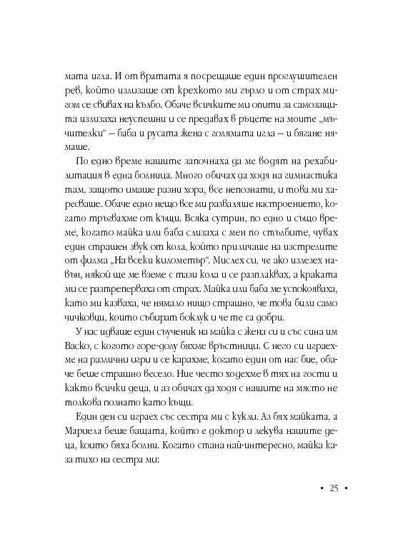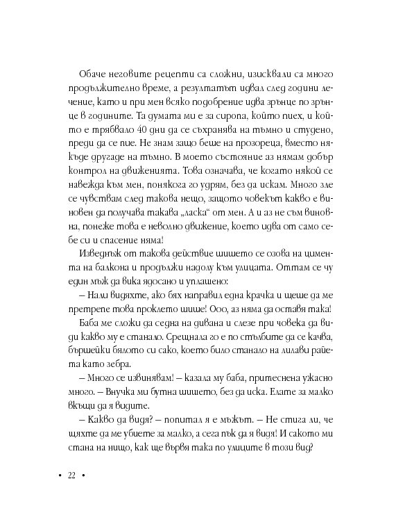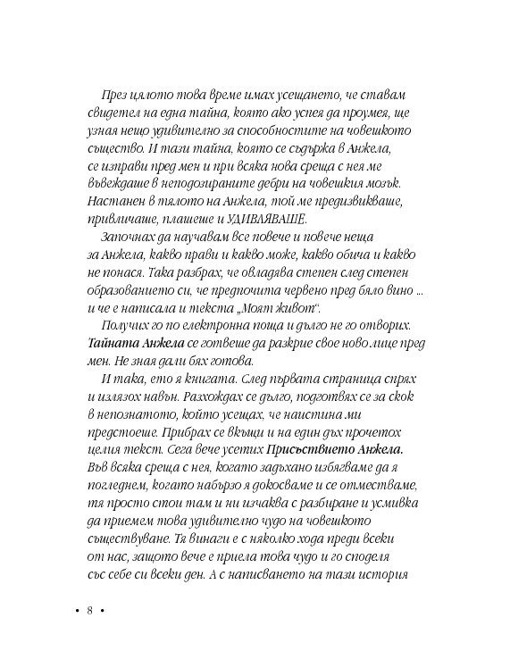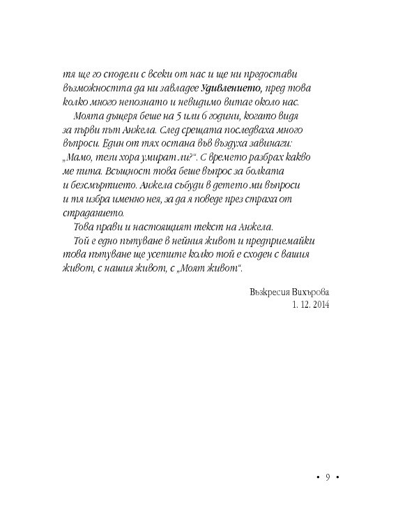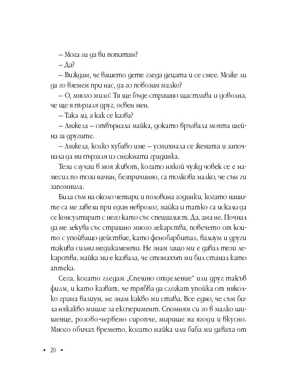 Анжела е с дух на борец, не спестява нищо на никого, иска да бъде чута, разбрана и най-вече – обичана. Книгата й е непретенциозна, наивна, трогателна изповед, която цели да насочи прожектора към ежедневието на хора с подобно (и не само) страдание.