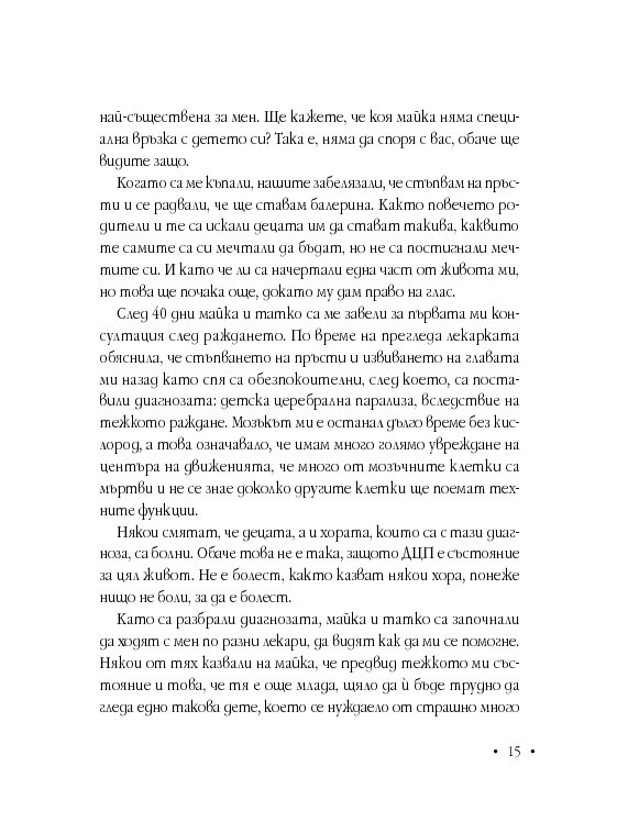 С книгата ми МОЯТ ЖИВОТ. ДА ИМАШ ЛЯВ ПАЛЕЦ искам хората, които нямат определен физически проблем или каквато и да е представа за състоянието на човек в инвалидна количка, да разберат няколко истини за него. Хората в колички сигурно понякога ви изглеждат като красиви кукли, на които не им липсва внимание или пък не толкова хубави, но също задоволени с всичко, от което [...]