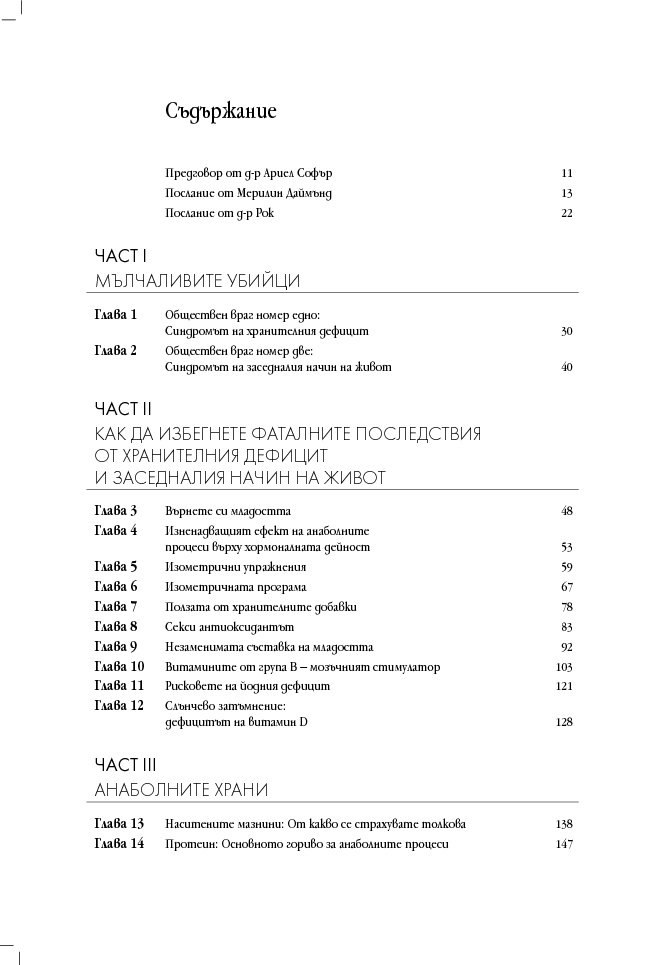 Това съвсем не е всичко! Какво ще кажете за упражнения, състоящи се от 6-секундни мускулни контракции, които можете да правите навсякъде и по всяко време, и които ще стегнат тялото ви и ще увеличат физическата ви сила с цели 20 процента само за 4 седмици? Ще узнаете всичко за храните и хранителните добавки, което вашият лекар не знае или не иска да ви каже.