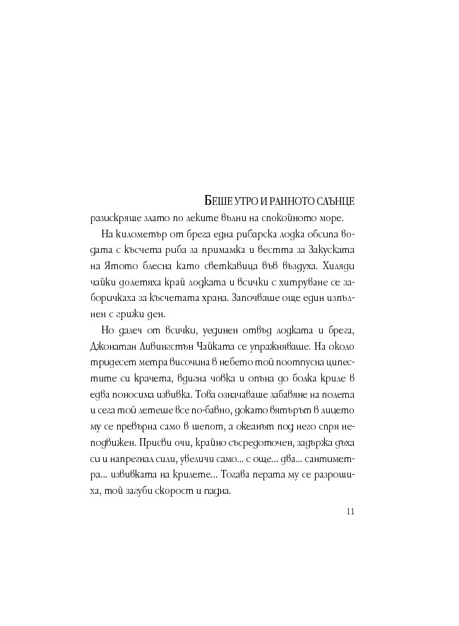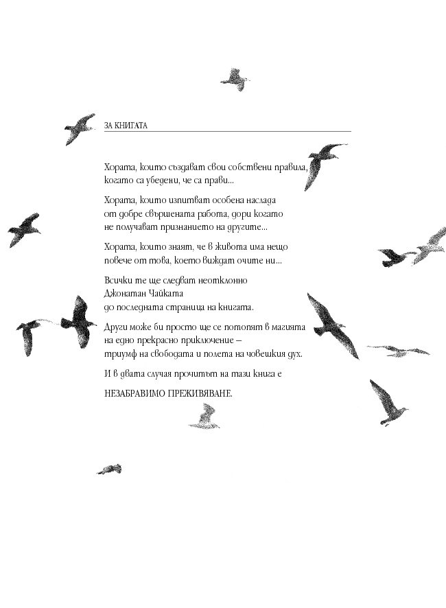 Препрочитах [тази глава] отново и отново. Не можеше да е вярно! Нима чайките, които бяха последвали Джонатан, щяха да убият духа на полета с ритуали?