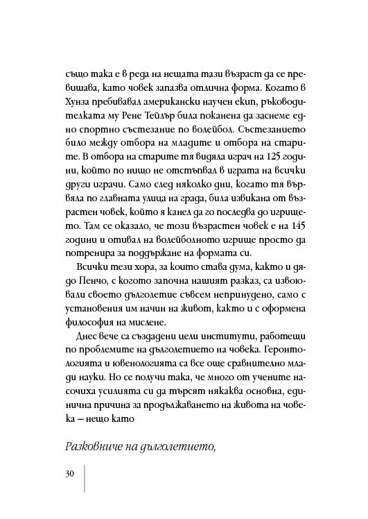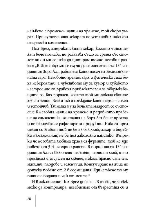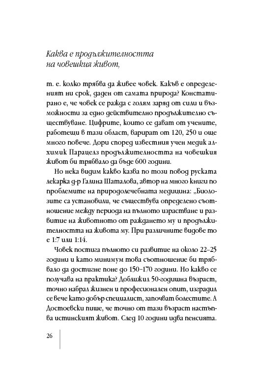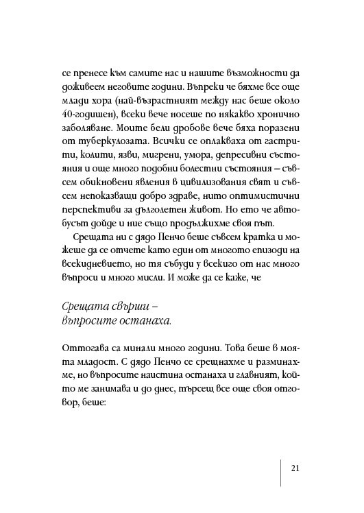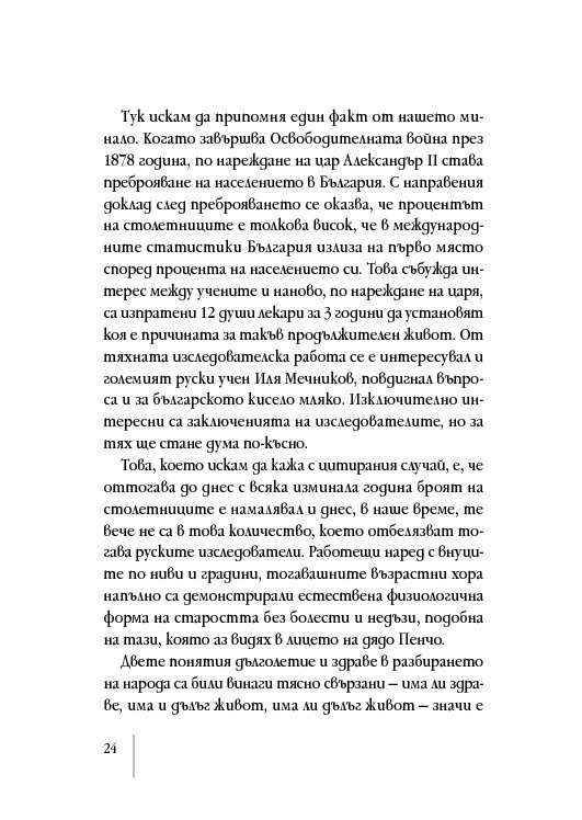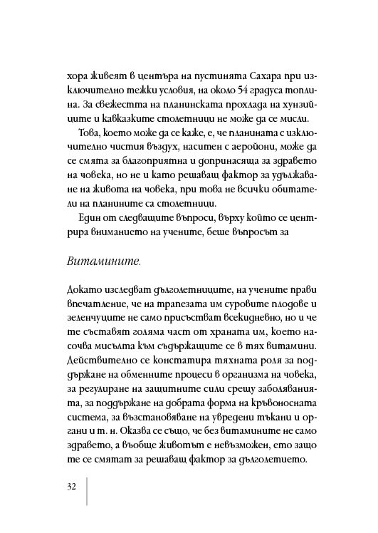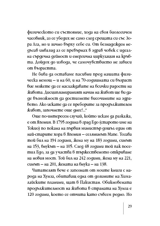 Посочват се основните изисквания за здраве и дълголетие – храна, движение, хигиена, душевна хигиена, самоконтрол, самодисциплина, силна воля на характера.