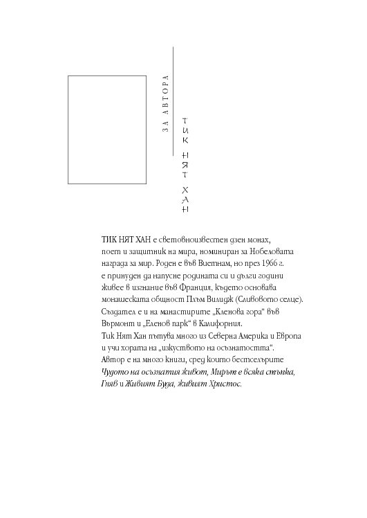 ИК КИБЕА публикува за първи път на български основополагащия труд на Тик Нят Хан „Истинска любов“. „Чудото на осъзнатия живот“ е сред по-ранните му книги – написана е в далечната 1974 г., когато той е член на будистката делегация за мир в Париж. Тази книга, която отдавна се е превърнала в бестселър, въвежда по достъпен начин в мъдростта на медитацията. Както казва Мартин Лутър Кинг Младши: „В този прекрасен, светъл наръчник дзен учителят Тик Нят Хан ни предлага спокойни разкази и практически упражнения, с които да овладеем умението да бъдем будни и осъзнати. Той ни напомня, че всеки миг крие в себе си възможност да разберем по-добре себе си и да постигнем душевен мир“.