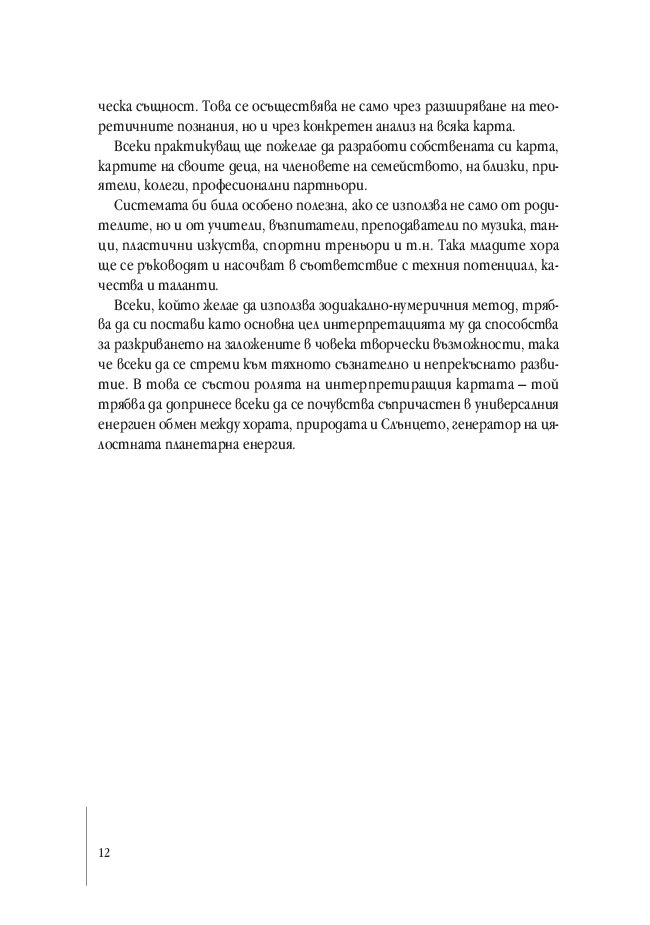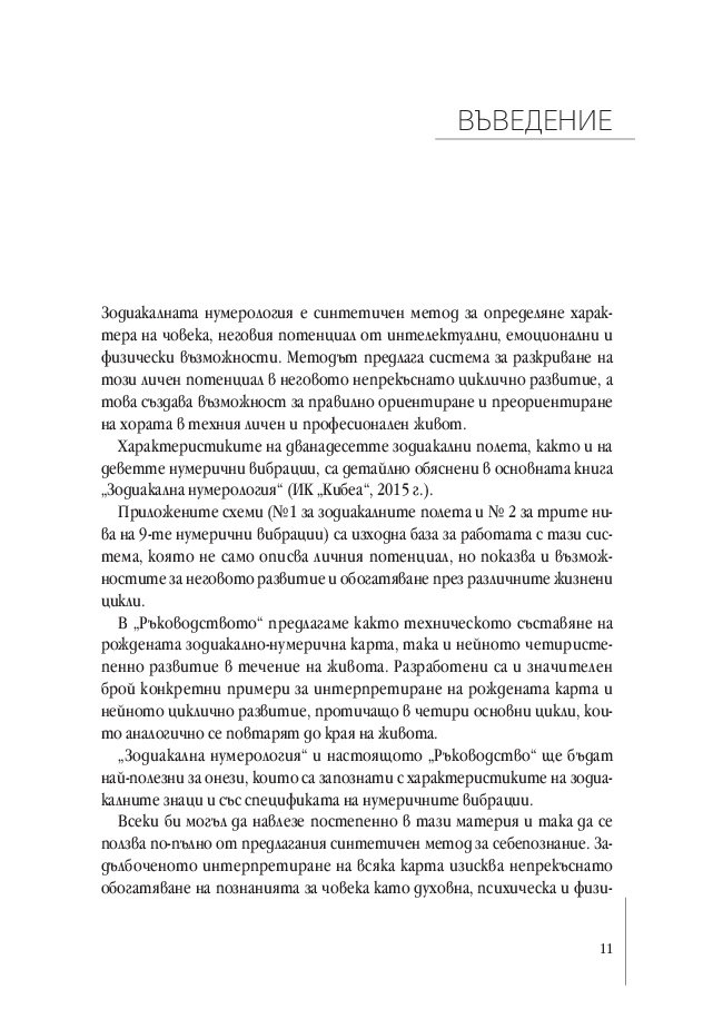 Ръководството за интерпретиране на зодиакално-нумеричната карта е неразделна част от „Зодиакална нумерология“, публикувана през 2015 г. от ИК „Кибеа“. В нея са изложени принципите за съчетаване на две системи: зодиакалната, базирана на 12-те зодиакални полета, и нумеричната система на числата от 1 до 9. В резултат се получават 108 типа хора, чиито характеристики са описани в основната книга, без която предлаганото ръководство няма да бъде разбрано.