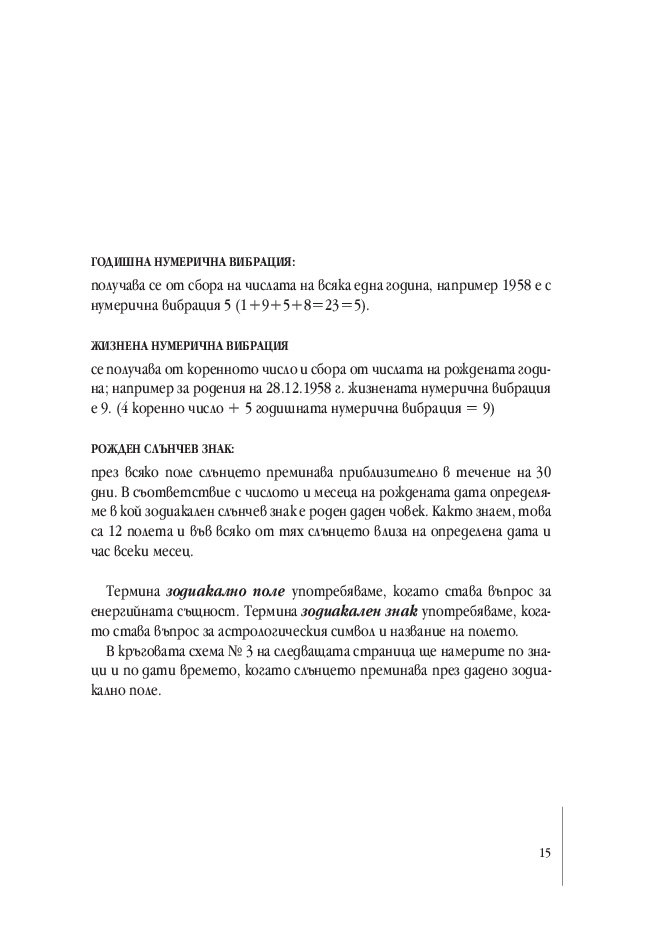 Цялостното интерпретиране на зодиакално-нумеричната карта по цикли, по години и по месеци дава възможност всеки да намери благоприятно време за укрепване на здравето, подобрения на личния живот, материалното състояние и професионалния успех.