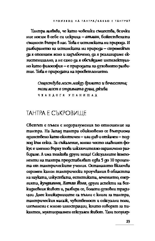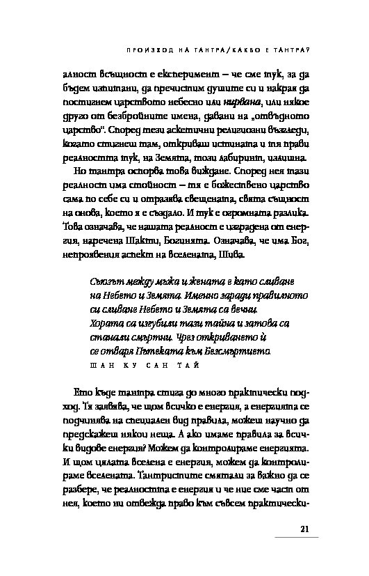 Древните принципи на тантра, оставали мистерия в продължение на хилядолетия, са обяснени тук, а практическите й приложения за обикновения човек са представени по прост начин.