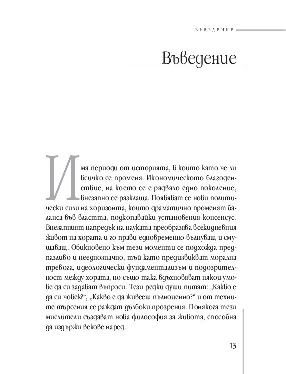 Много от темите, вълнуващи старите философи, стоят неразрешени и пред нас. Намираме ли нашия отговор днес? Понякога може би да, макар много от въпросите стоят все така зададени... Но благородството на ума, отдаден на истината, е може би най-впечатляващият урок на древността. Урок по водене на спор. Урок за измамността на славата. За секса и въздържанието. За удоволствията. За богатството от пътешествията. За смъртта.