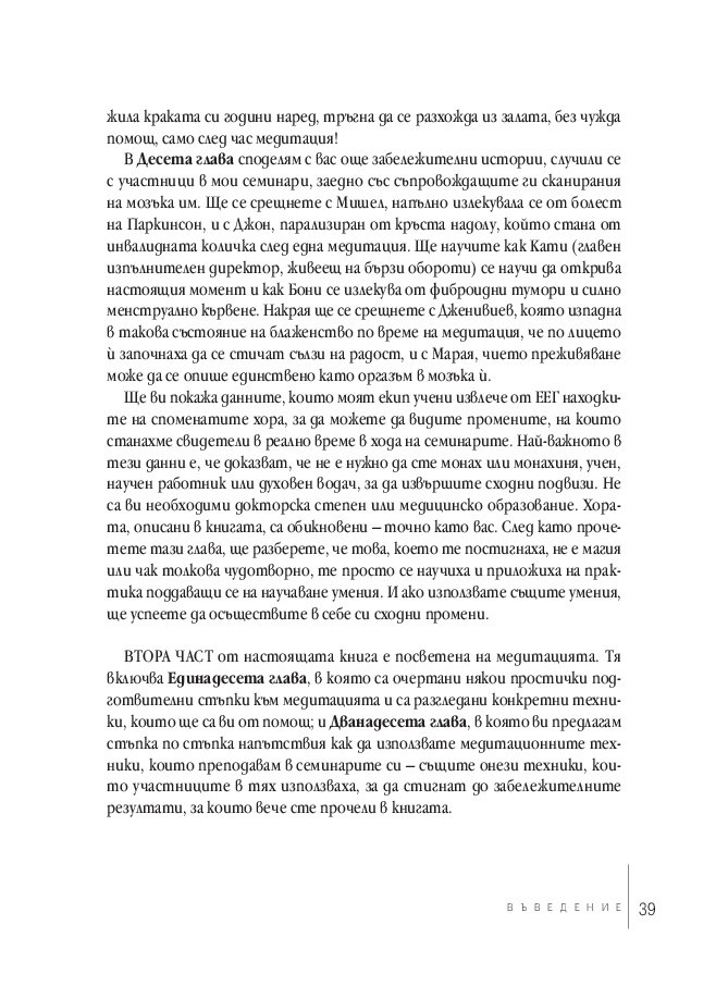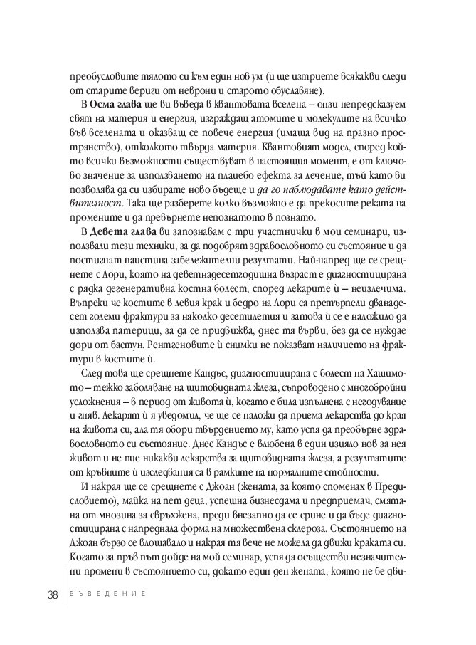 Доктор Джо задава въпроса „Възможно ли е да се преподадат принципите на плацебо и без да се разчита на външна субстанция, да се предизвикат същите ефекти като предизвикваните от тази субстанция вътрешни промени в здравното състояние на индивида и в крайна сметка – в живота му?“ А след това авторът споделя с читателите научни данни (включително цветни изображения от мозъчни сканирания) за впечатляващи излекувания, случили се по време на негови семинари, на които той учи участниците на модела си за лична трансформация, основаващ се върху практическото приложение на т. нар. „плацебо ефект“. Книгата приключва с начин как да медитирате