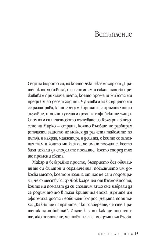 Едно необичайно пътуване из България в търсене на странно малко момче на име Марко довежда автора до фундаменталния въпрос, зададен от деца: „Какво ще направите, ако разберете, че сте Пратеник на любовта, и че просветлението не е нещо далечно, че то е реалност и се случва тук и сега?“