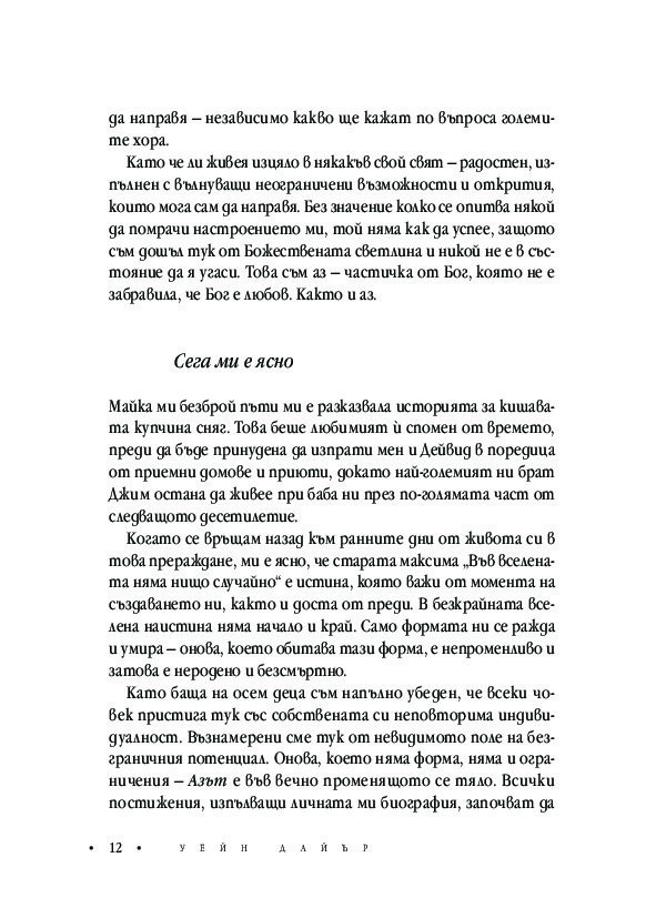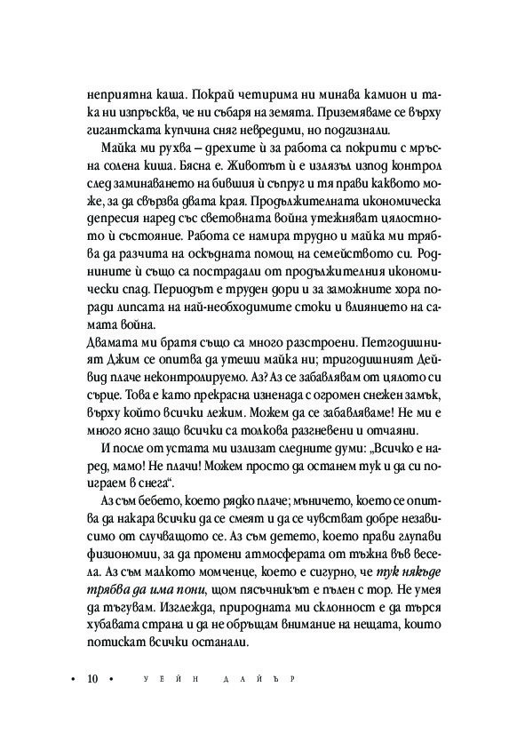 В тези мемоари Уейн задушевно разказва за някои от най-важните си преживявания – от детството, прекарано в сиропиталища, през годините в американската армия до писането на бестселърите му. Ще имате чувството, че сте там с него. Ще се вдъхновите да погледнете собственото си минало, за да видите как всичко преживяно ви е довело до настоящото ви място.