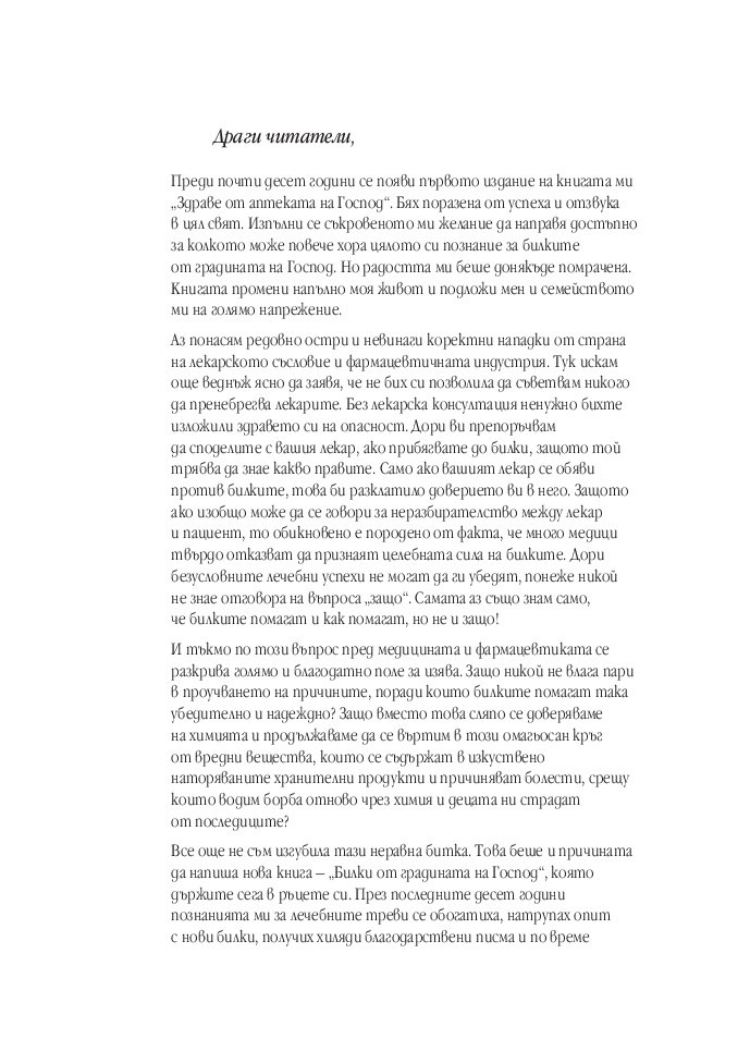 Когато се появява първата книга на Мария Требен, тя има зад гърба си пълноценен и щастлив живот, макар и непощаден от някои удари на съдбата. Тя била много скептична дали някой ще прояви интерес към нейните съвети и опит с билките, „защото книжарниците вече бяха препълнени с най-хубавите книги за билки, каквито човек може да си представи“. Но се случва друго. Книгата на Мария Требен „Здраве от аптеката на Господ“ се продава изключително добре и за кратко време превзема челните позиции в класацията за книги. Голям немски ежедневник дори обявява първото произведение на Мария Требен за бестселъра на века. Досега са продадени повече от 12 милиона екземпляра от нейните книги, които са преведени на повече от 20 езика и превръщат авторката в световнопризнат експерт по билките. Мария Требен плаща висока цена за този успех. Налага се да замени спокойните си старини срещу трескав живот по график. Само благодарение на своята жизненост и здравословния си начин на живот успява да се справи с подобно натоварване. Тя прави тази саможертва, за да предаде на хората познание, което е застрашено от забрава. Мария Требен е дълбоко вярваща жена и убедена християнка. Своята житейска мисия тя вижда в това да популяризира знанията си за милостта и всемогъществото на Създателя, „който от незапомнени времена кара билките да растат за наше добро“. Призвание, което идва късно.