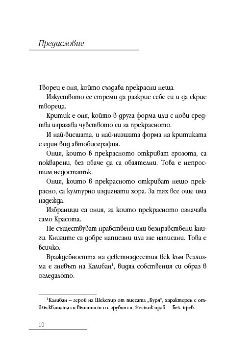 Критиката светкавично реагира: „Името на Уайлд стана синоним на всичко нездраво“, а английската публика е шокирана от суровата присъда на младия ирландец над нравствените и естетически възгледи, претърпяващи дълбока криза в „края на века“. Чрез блестящите си парадокси, вплетени в динамични диалози и проникновени есеистични разсъждения, Уайлд критикува както артистичните претенции, така и обществения морал на пуританска Англия. Той поставя огледало пред лицето на своите съвременници и реакцията е ужас и отхвърляне.