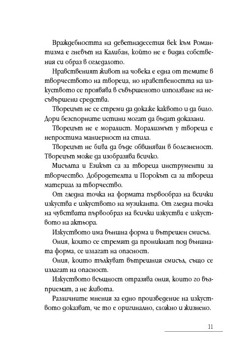 От висотата на своя антиреалистически индивидуализъм Оскар Уайлд твърди: „Животът е отрова, която погубва изкуството“.
