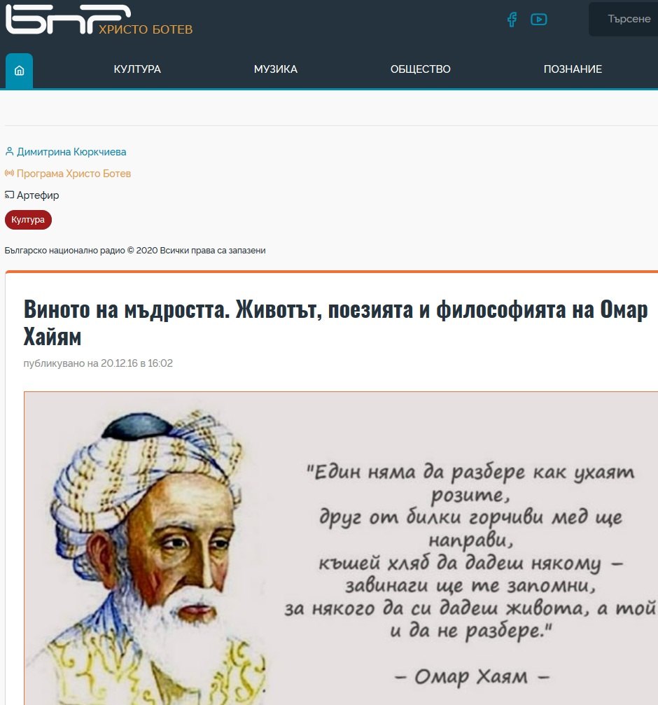 Авторът на тази книга Мехди Аминразави изследва въздействието на поета, но също така математика и астронома Хайям, върху науката, философията и поезията и развенчава митовете около легендата, за да открие истинската му личност. Според издателите, книгата обхваща изключителния живот, вдъхновяващата поезия, философските и научни трудове на Омар Хайям, както и значителното му влияние върху писатели като Марк Твен и Т. С. Елиът, за да представи изчерпателно философията и творчеството на великия суфи мислител от Средновековна Персия на нашия несигурен постмодерен свят.